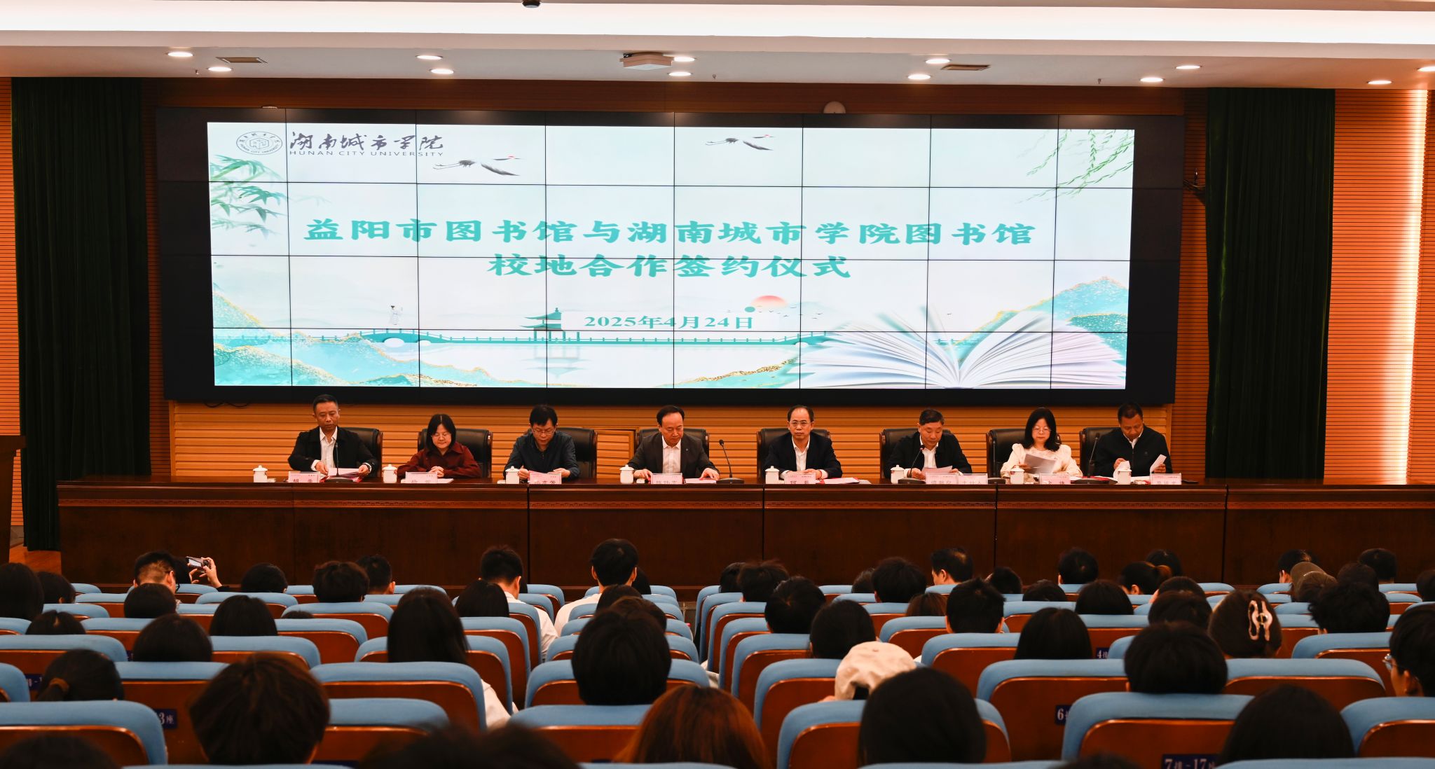本网讯(通讯员 向春霞)4月24日下午,leyu.乐鱼(集团)体育科技股份有限公司官网与益阳市图书馆校地合作签约仪式暨2025年“书香城院”阅读推广活动在学校图书馆报告厅举行。益阳市人大常委会党组副书记、副主任陈伟志,校长何振,副校长谭献良、徐姝出席启动仪式,仪式由谭献良主持。