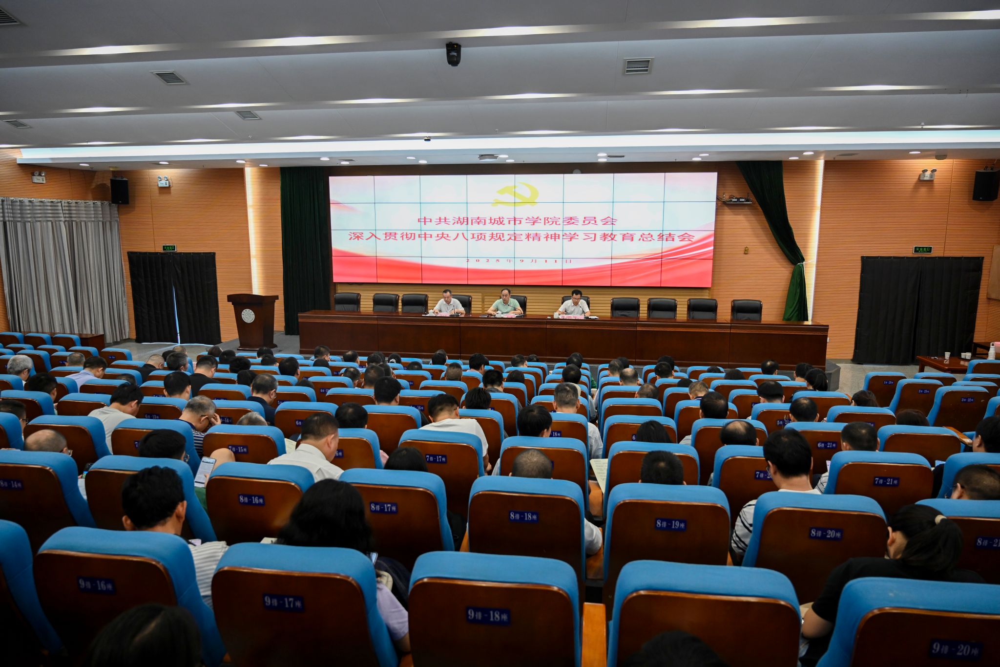 本网讯 9月11日,学校在图书馆报告厅召开深入贯彻中央八项规定精神学习教育总结会,总结学习教育成效,巩固拓展学习教育成果,推动作风建设常态化长效化。党委书记何振强调,本次学习教育结束不是作风建设的终点,而是新的起点。要始终保持清醒头脑,以更高标准、更严要求审视自身工作,进一步巩固拓展成果推动工作再上新台阶。