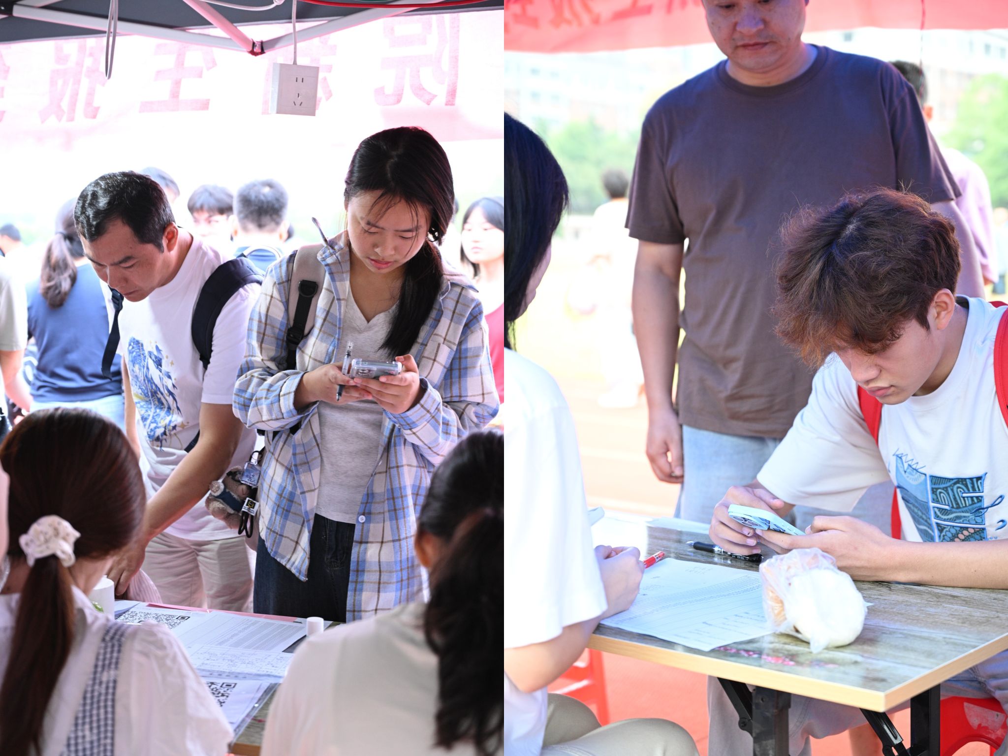 迎新第一天上午,校党委书记何振来到迎新现场,看望2025级新生,检查指导迎新工作。校领导陈瑜、袁志成、孙倩一同参加。