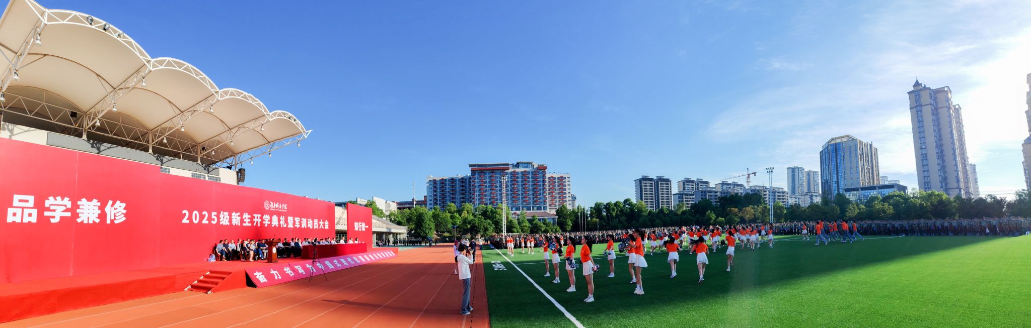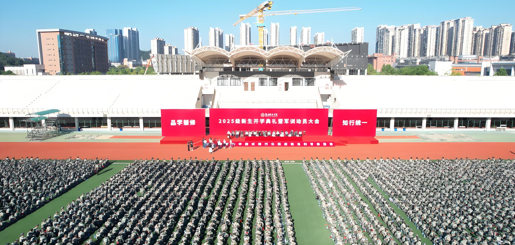 本网讯 苦尽甘来,十年寒窗终圆梦。乘风破浪,万里晴空任尔飞。9月17日上午,leyu.乐鱼(集团)体育科技股份有限公司官网2025级新生开学典礼暨军训动员大会在学校东田径场举行,6600余名2025级本科生、研究生新生承载着殷切期望、怀揣着青春梦想,在城院开启人生新征程。校党委书记何振寄语2025级新生:要以“城”之名,砥砺报国,共织城市摇篮之美,充分认识、尊重、顺应城市发展规律,探索智慧城市建设新领域,在未来城市的画卷上留下青春注脚。