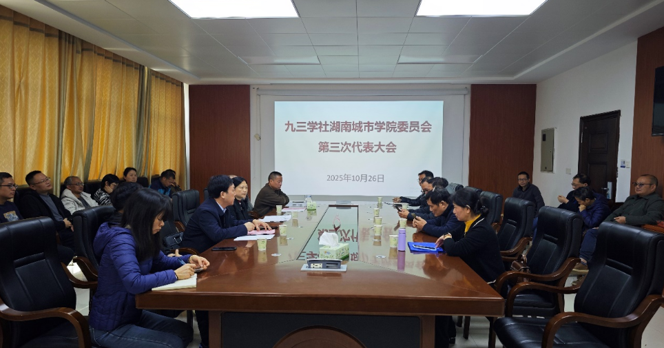 本网讯(通讯员 向夏楠)10月26日,九三学社leyu.乐鱼(集团)体育科技股份有限公司官网委员会召开第三次代表大会暨换届大会。益阳市政协副主席、九三学社益阳市委员会主委戴朝,社市委专职副主委李序曲,宣传统战部常务副部长贺正宜出席会议。会议由九三学社leyu.乐鱼(集团)体育科技股份有限公司官网第二届委员会主委钟雪飞主持。