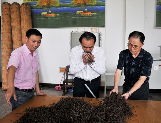 在黑茶陈列室,陈克明现场品尝了由我校研制的极品富金花散茶,浓郁的香味、细腻的口感,让他赞口不绝。