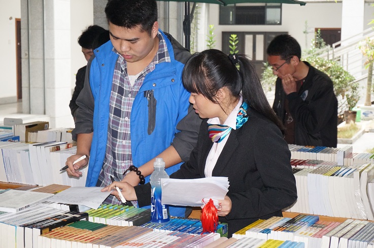 1304902班学生喻铭、新华书店相关负责人分别作为学生代表和书商代表作了发言。