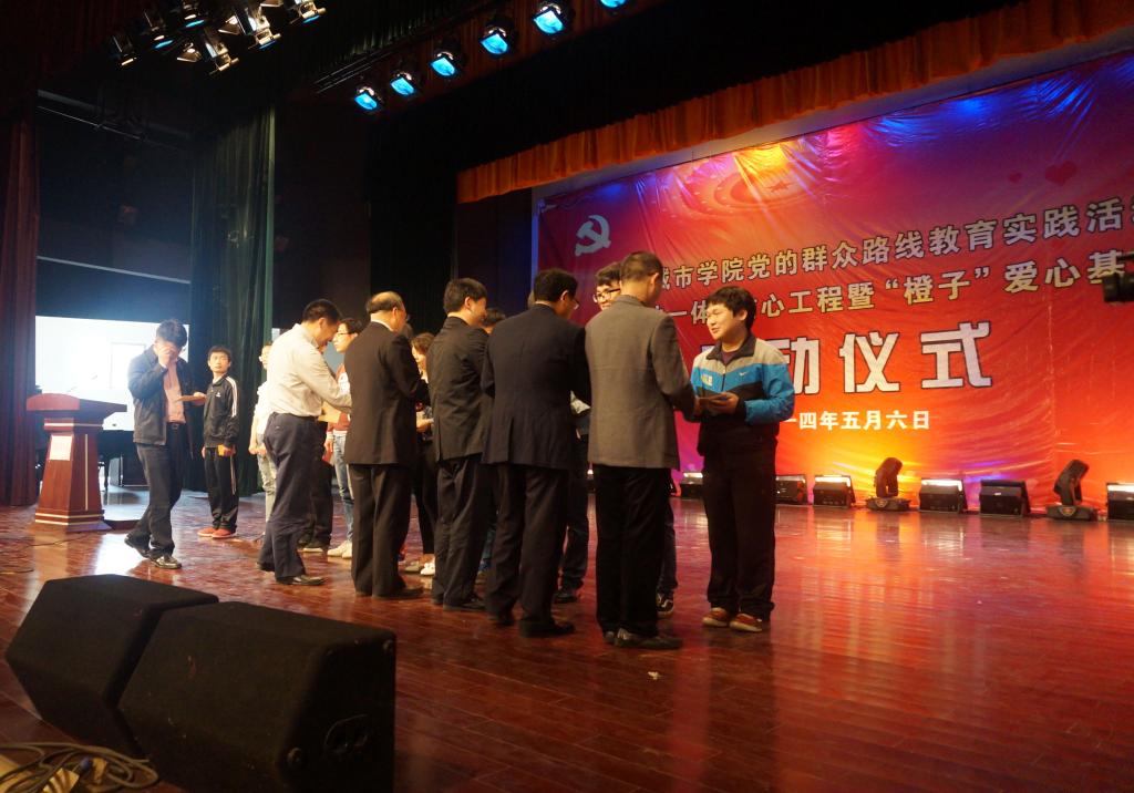 他呼吁全体师生员工,积极行动起来,从我做起,从现在做起,在你、我、他之间共同搭建一个爱心大平台,用实际行动做好“贴心工程”,壮大“橙子基金”,为实现和谐美好的城院梦努力奋斗。(黄晔)