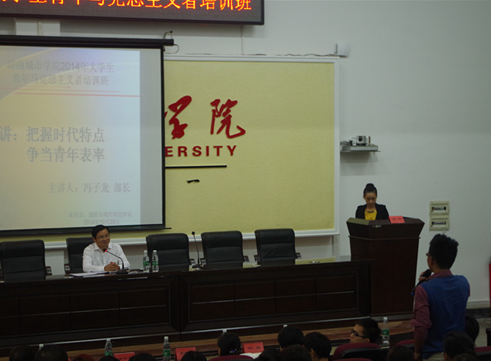 (本网讯) 1024下午,我校2014年大学生青年马克思主义培训班”(以下简称青马班)在电信楼视频会议室顺利开班,共青团湖南省委组织部部长冯子龙,共青团湖南省委学校部部长王虹彬、副部长郭绚霞,共青团益阳市委副书记林英,校团委书记李斌等出席开班仪式。各院团总支书记、团总支、学生会主席团成员近200人参加培训。开班仪式由校团委副书记王琦主持。