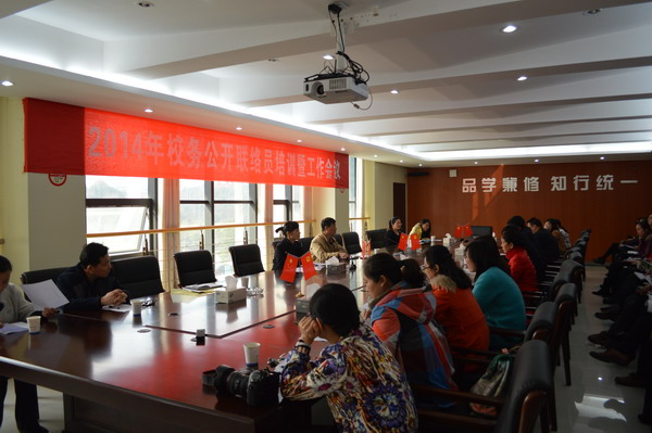 会议首先组织学习了《高等学校信息公开事项清单》、《leyu.乐鱼(集团)体育科技股份有限公司官网校务公开工作考评细则》、《关于二级学院院务公开的相关内容》等3个文件精神,随后,校务公开领导小组办公室主任姜宁(兼)对2014年学校校务公开工作检查、评比及表彰等工作做了布置安排。