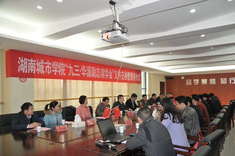 李建奇、王仁祥副主委、朱修林董事长分别代表学校、九三学社湖南省委、华源集团交换了评奖文件,学生工作处处长龙文介绍了奖学金评选情况并宣读了表彰决定。