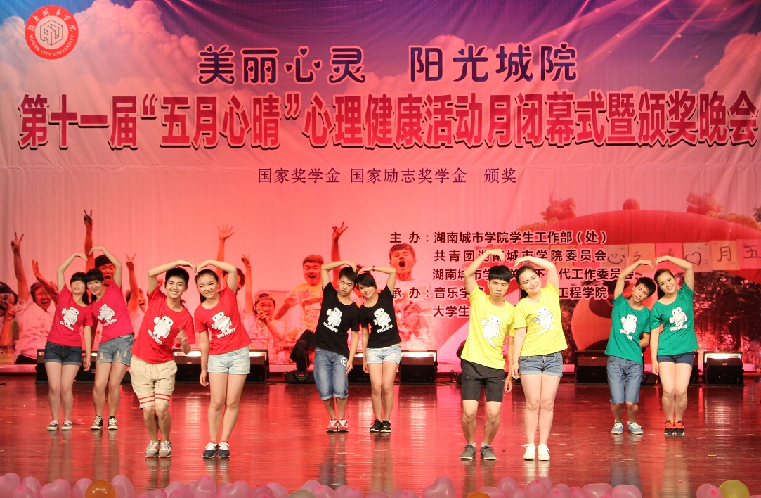 (本网讯) 531晚,第十一届“五月心晴”心理健康活动月活动闭幕式暨2014年度国家奖学金颁奖典礼在学校音乐厅隆重举行,为期一个月的“五月心晴”心理健康活动月活动至此圆满结束。  学校党委委员、副校长 汤放华 教授应邀出席晚会并给获得2014年度国家奖学金优秀学生颁奖,学校关心下一代工作委员会、党委宣传部、学生工作部、团委、招生就业处及各二级学院领导观看演出并颁奖,大学生心理健康教育中心全体教师、二级学院辅导员及大学生心理健康协会干部和会员参加闭幕式。