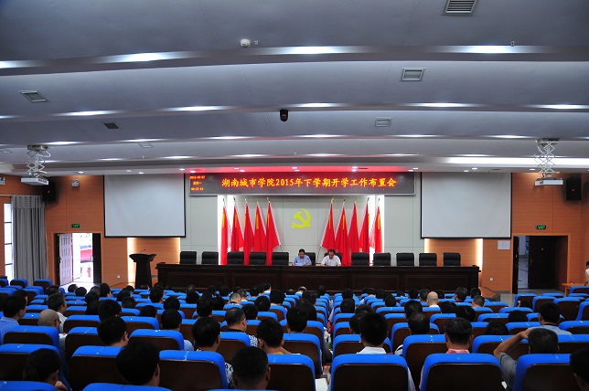 (本网讯) 97上午,我校2015年下学期开学工作布置会在逸夫图书馆报告厅举行。在家的校领导以及全校副处级以上干部出席会议。校党委书记李建华、校长李建奇讲话,布置本学期主要工作任务和重点工作。