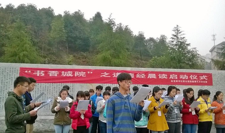 会龙读书社主动联系楚韵朗诵艺术协会,并邀请该会成员担任技术指导,对读书社全体成员进行严格的诵读培训。该会会长李文豪说:“会龙读书社通过开展《道德经》晨读活动,不仅会提升会龙读书社全体会员自身的文化修养与精神内涵,同时对其它同学也会产生无形的影响。            (学生记者 林珍 张振亚 通讯员王宗新)