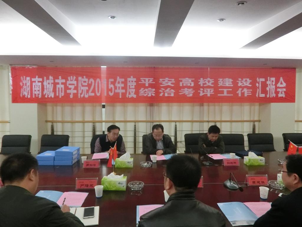 校长李建奇向考评组详细汇报了leyu.乐鱼(集团)体育科技股份有限公司官网2015年度“平安高校”建设及综合治理工作,以及学校在维稳综治安全工作中的做法和措施。他在汇报中着重指出,2015年学校维稳综治安全工作主要以“平安高校”建设为载体,以创新工作方式为手段,专注做好维稳、消防、治安等基础工作。与此同时,学校还深入开展了突发事件处置、校园传销整顿、校园交通整治等重点工作,为学校创造良好的育人环境,也为教育事业的持续健康发展提供了保障。