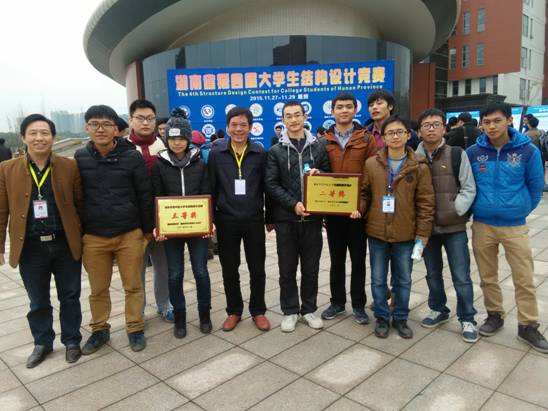 (本网讯)1127日至29日,湖南省第四届结构设计竞赛在湖南工业大学举行。经过3天激烈的比拼,我校彭细荣、彭桂强、 黎永索 老师指导的杨瑞、华存金、李毅参赛队获二等奖,廖建平、刘诗尧、袁斌斌组获三等奖,廖建平成为全省唯一上台领奖的女选手,获得了颁奖嘉宾的特别肯定。