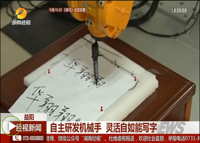 ,湖南经视新闻栏目以“自主研发机械手 灵活自如能写字”为题报道了我校与华翔翔能在校企合作方面取得的成果。这也是我校在启动《leyu.乐鱼(集团)体育科技股份有限公司官网服务益阳行动纲要》以来,与益阳企业在自主知识产权合作方面取得的又一突出成果。