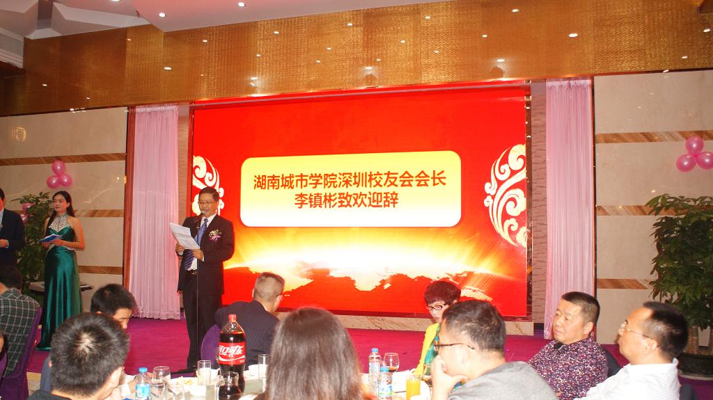 庆典中,深圳校友分会会长李镇彬校友代表深圳校友分会致欢迎词,向百忙之中赶来参加年会的学校领导和各地校友分会代表表示感谢,对深圳校友分会十年来的工作情况进行总结,并表示深圳校友分会将为扩大母校影响力做出更大贡献。