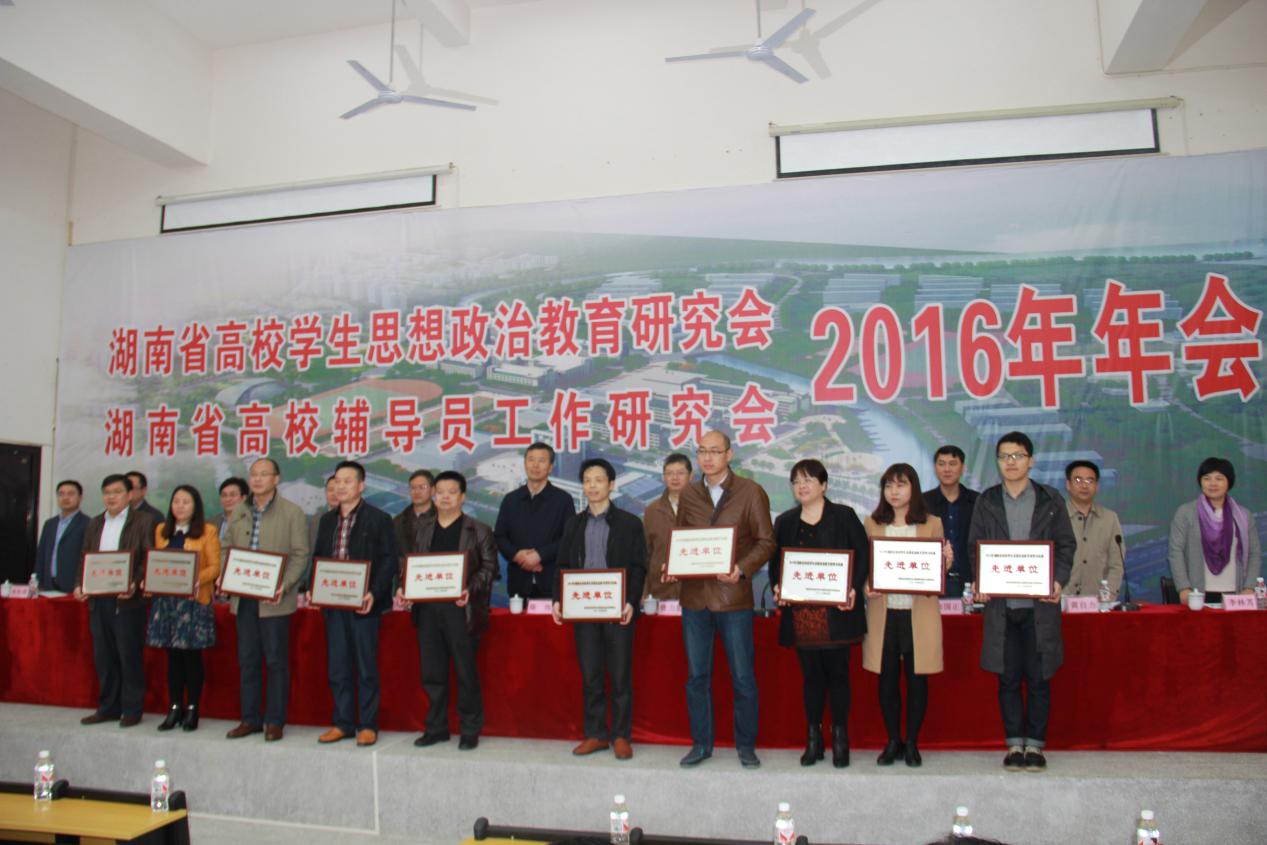 会议表彰了一批先进单位和个人,我校被评为湖南省高校学生思想政治教育研究与实践先进单位,通信与电子工程学院辅导员冷红和信息科学与工程学院辅导员张文勋两位老师被评为湖南省高校学生思想政治教育研究与实践先进个人。(王宗新)
