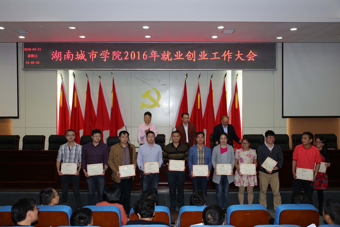 招生就业处处长汪佑民在会上宣读了学校《关于表彰2015届毕业生就业工作先进集体和先进个人的决定》。数学与计算科学学院、建筑与城市规划学院、土木工程学院、信息科学与工程学院被评为就业工作先进集体,体育学院、外国语学院被评为就业工作进步集体,王益勇等11人获得就业工作先进个人称号,郭羽等3人获毕业生就业基地开拓奖,江华等9人获就业工作贡献奖。