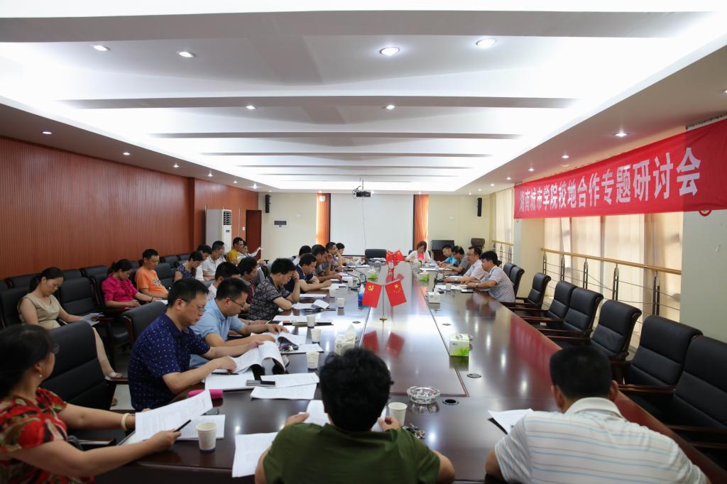 (本网讯)6月20日下午,我校校地合作专题研讨会在办公楼一会议室举行。校长李建奇,副校长汤放华,二级学院院长和科研副院长,科学研究与学科建设处、产业处、应用与创新管理中心、发展规划与社会服务处等部门负责人参加了会议。会议由汤放华主持。