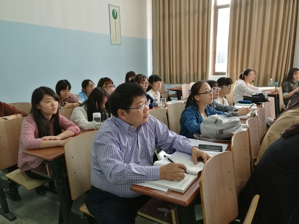 在听完青年教师符俊的综合教程课后,他肯定了符老师的课上得比较好,驾驭课堂能力较强,互动教学也开展得不错。他还了解了符俊老师的科研情况,鼓励其要在继续搞好教学工作的同时,做好科研工作,尽快提高科研实力和职称水平。