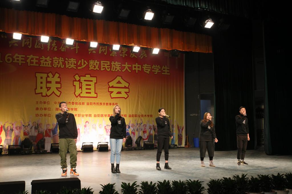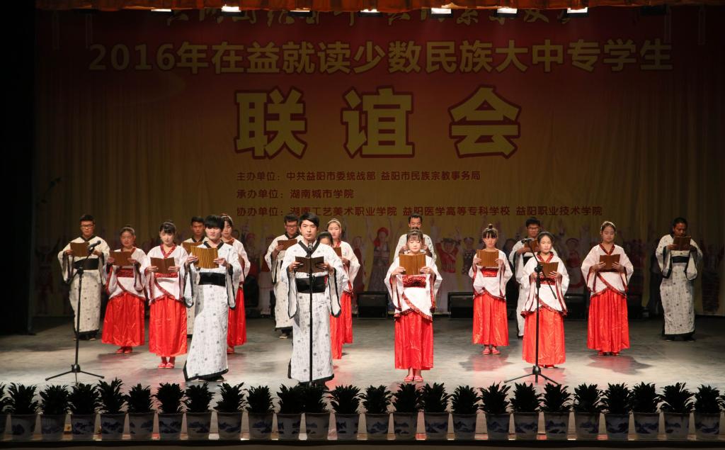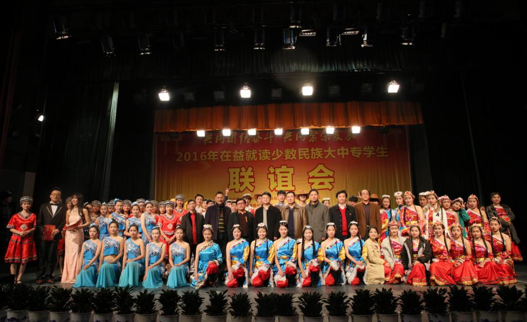 (本网讯)12月18日下午,2016年在益就读少数民族大中专学生联谊会在我校音乐厅隆重举行。联谊会由市委统战部、市民族宗教事务局主办,leyu.乐鱼(集团)体育科技股份有限公司官网承办,湖南工艺美术职业学院、益阳医学高等专科学校、益阳职业技术学院协办,主题为“共同团结奋斗 共同繁荣发展”。益阳市委宣传部、市委统战部、市民族宗教事务局、市公安局、市教育局、市文体广新局以及四所高校相关负责人出席联谊会。