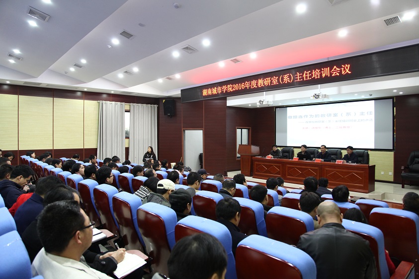 (本网讯)为进一步加强我校教学管理队伍建设,不断提高全校教研室主任的管理水平,12月20日下午,学校在建规楼121学术报告厅举办了全校教研室主任培训讲座。党委副书记汤放华,副校长雷存喜,党委委员、组织部长罗新湘出席讲座,各二级学院教学院长、教研室主任以及教务处全体成员一起聆听了讲座。讲座由雷存喜主持。