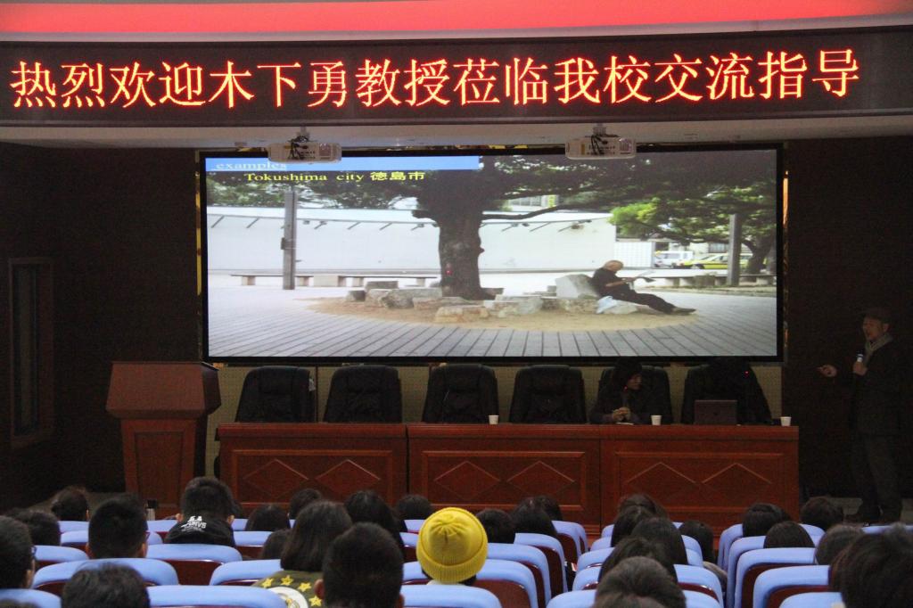 (本网讯)2017年3月14日下午,我校邀请国际知名学者、东京工业大学博士、日本千叶大学园艺学研究科木下勇教授在建筑规划楼一楼报告厅举行题为“城市的可识别性与可持续性”的学术讲座。讲座由湖南大学博士生导师沈瑶担任翻译,建筑与城市规划学院院长吕贤军主持。