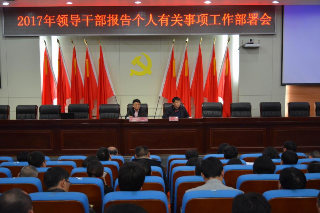(本网讯)4月6日晚上7点,我校在图书馆报告厅召开2017年领导干部报告个人有关事项工作部署会。校党委书记罗成翼,党委副书记汤放华,纪委书记姚春梅,党委委员、组织部长罗新湘,原党委副书记、副校长孟昭武出席会议,全体处级干部参加会议。会议由汤放华主持。