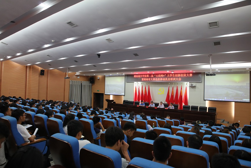 (本网讯)6月6日,学校在图书馆报告厅召开了leyu.乐鱼(集团)体育科技股份有限公司官网第二届“互联网+”大学生创新创业大赛暨湖南省大赛选拔赛动员及培训大会。副校长雷存喜、谭献良,教务处相关负责人、创新创业导师、团委、学生处、招生就业处、应用与创新创业学院负责人、二级学院负责学科竞赛副院长、负责学生工作副书记、各班班长、学习委员参加了会议。