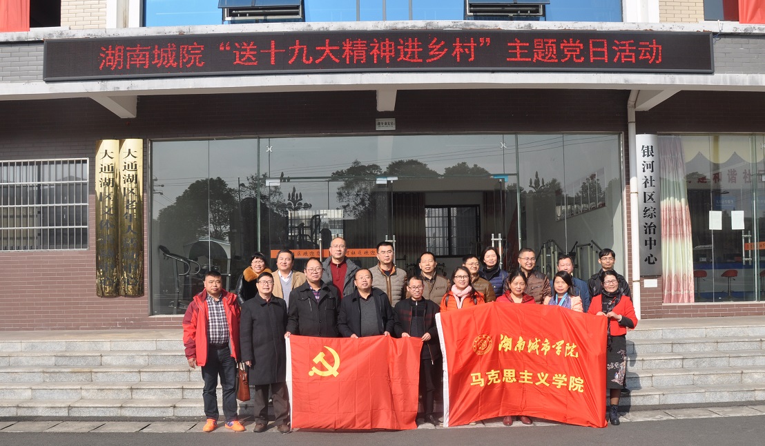 (本网讯)为了积极推进党的十九大精神进乡村,促进乡村科学跨越发展,12月9日,马克思主义学院党总支委员会与益阳市大通湖区委区管委会办公室机关支部委员会联合开展了一次颇具特色的“送十九大精神进乡村”主题党日活动。