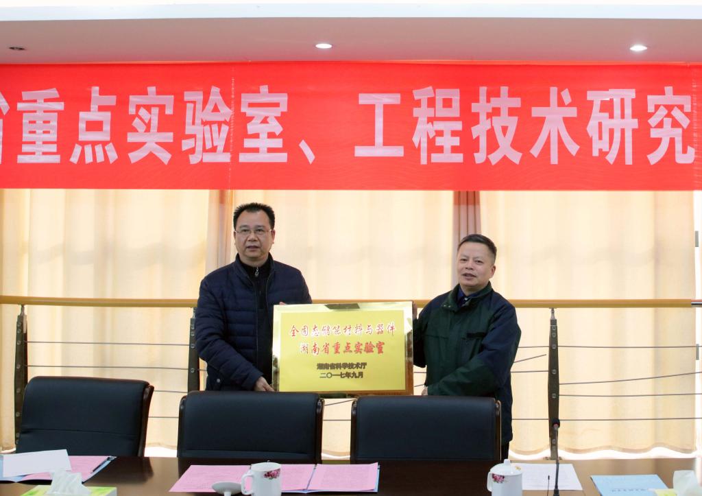 (本网讯)12月22日下午,省科技厅副厅长贺修铭、科研条件与基础研究处处长彭敬东、益阳市科技局副局长欧小娥一行来校,为我校获批的国家级众创空间、湖南省重点实验室、工程技术研究中心授牌,并参加省重点实验室学术委员会会议。在家的校领导,各二级学院院长,党政办、宣传部、科研处、教务处、质控中心负责人参加会议。会议由校长李建奇主持。