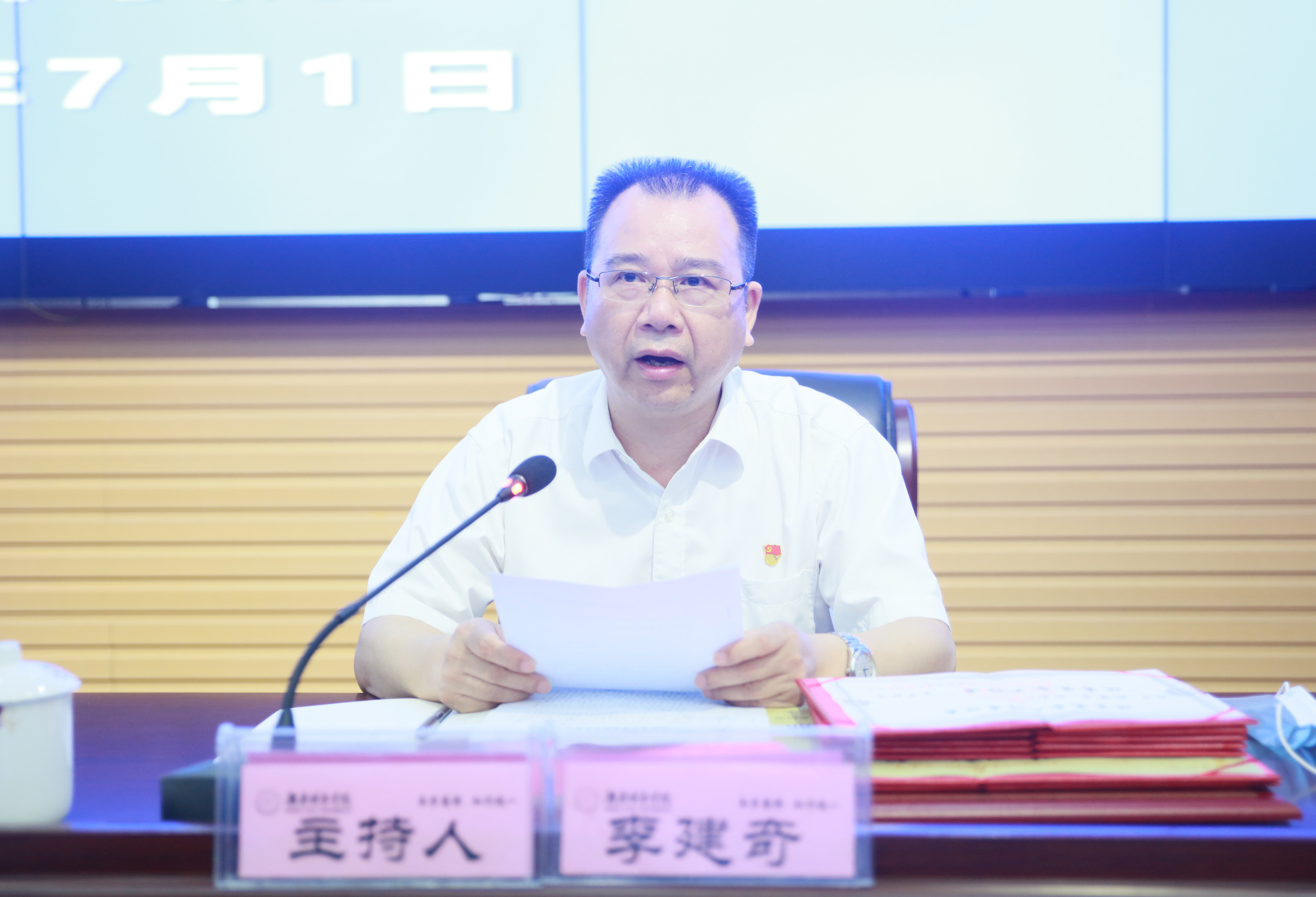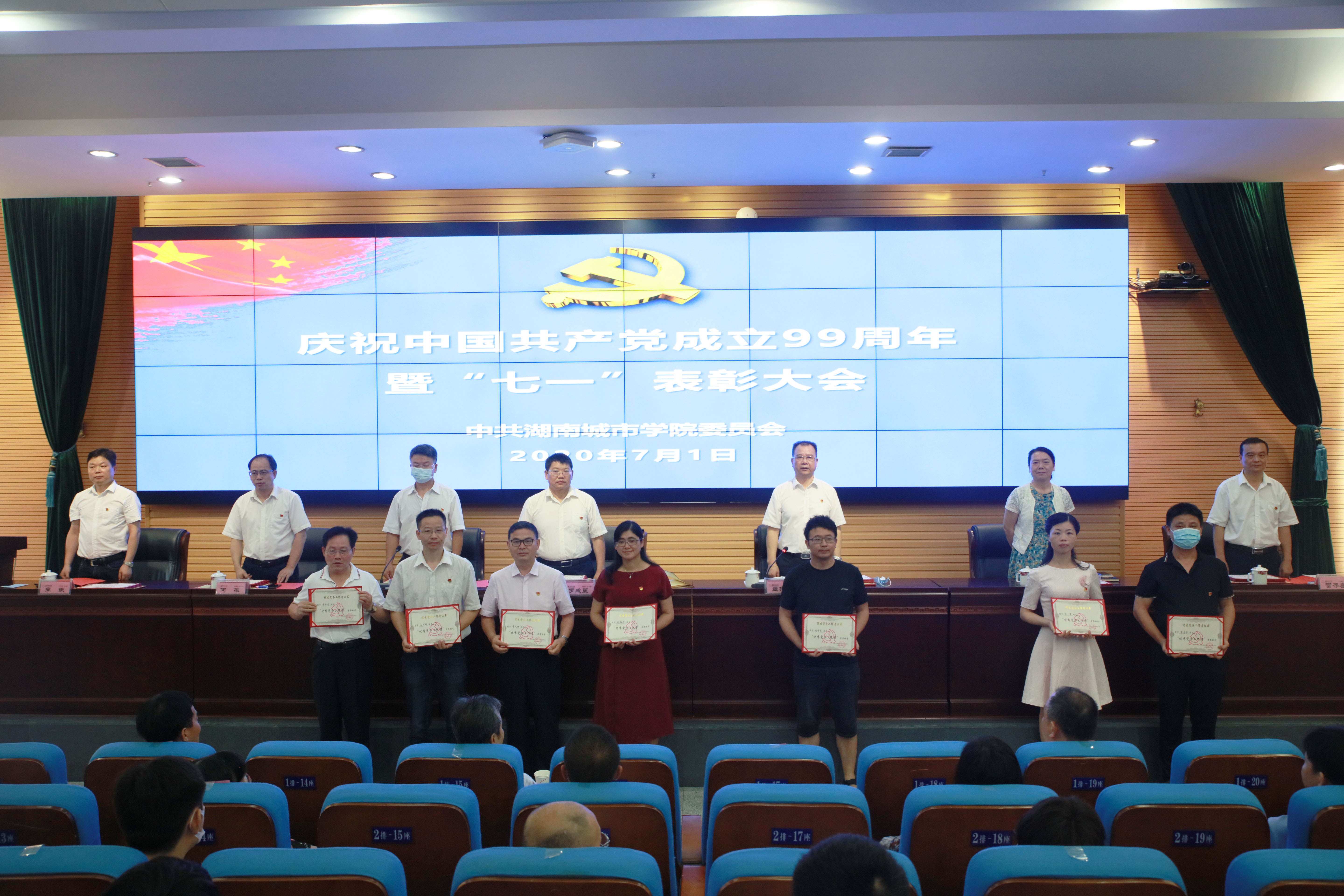 本网讯(通讯员 冷红)2020年7月1日上午,leyu.乐鱼(集团)体育科技股份有限公司官网庆祝中国共产党成立99周年暨“七一”表彰大会在逸夫图书馆报告厅举行,在家的校领导、受表彰对象、副处级以上党员领导干部、党支部书记代表参加会议。会议由党委副书记、校长李建奇主持。