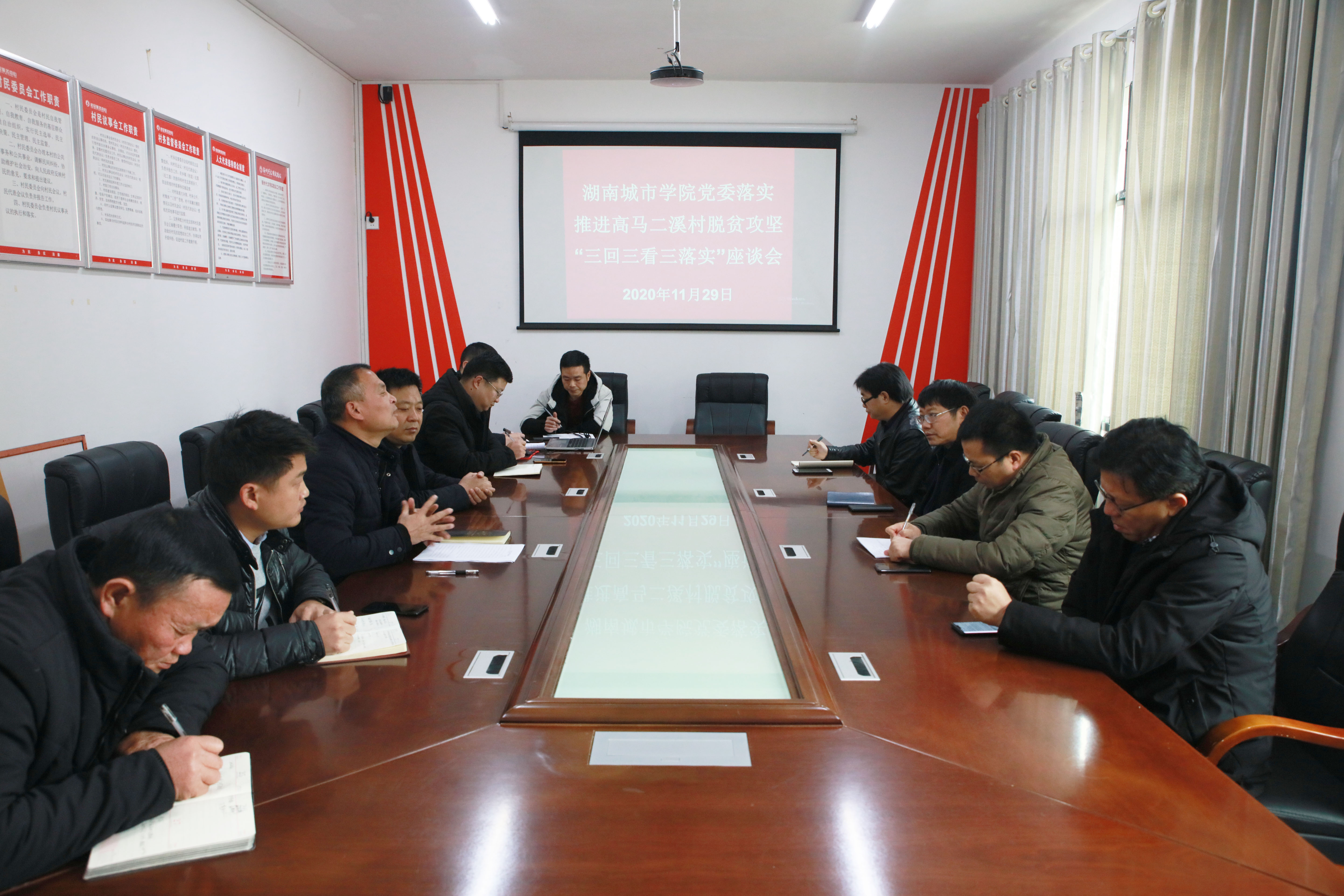 本网讯(记者 博夕)2020年11月29日,党委书记罗成翼一行赴我校定点扶贫村——安化县高马二溪村,开展脱贫攻坚“三回三看三落实”工作。