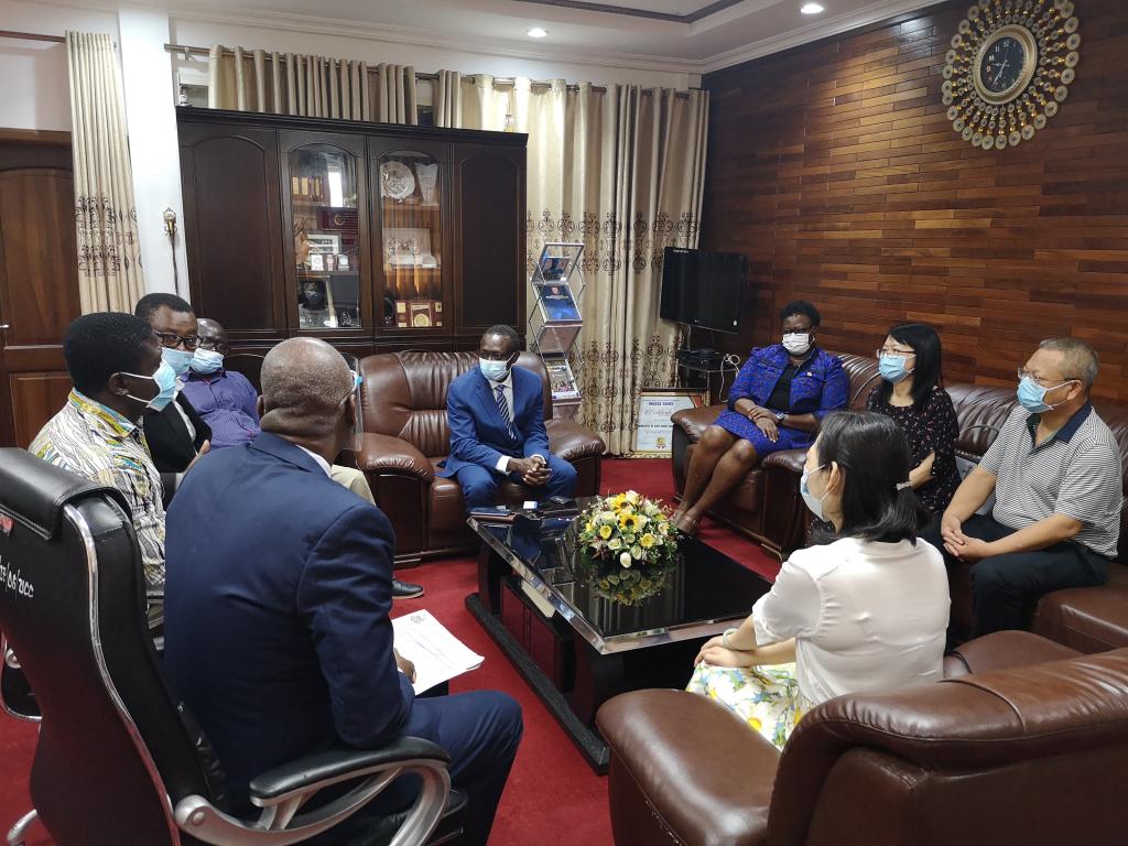 本网讯2020年12月1日,加纳海岸角大学孔子学院新任中方院长周桂平受邀拜访海岸角大学校长约翰逊·尼亚科·波阿鹏(Johnson Nyarko Boampong),海岸角大学在校长室举行了简短的欢迎仪式。海岸角大学副校长朵若·安都·卜安朵(Dora Edu Buandoh)、教务总长欧扬米·杰夫·特易·艾玛纽埃尔(Onyame Jeff Teye Emmanuel)、人文与法律学院院长弗朗西斯·艾瑞克·阿莫宽多(Francis Eric Amuquandoh)、文学院院长夸美·奥塞·夸腾(Kwame Osei Kwarteng)和海岸角大学孔子学院外方院长伊什梅尔·门萨(Ishmael Mensah)出席。
