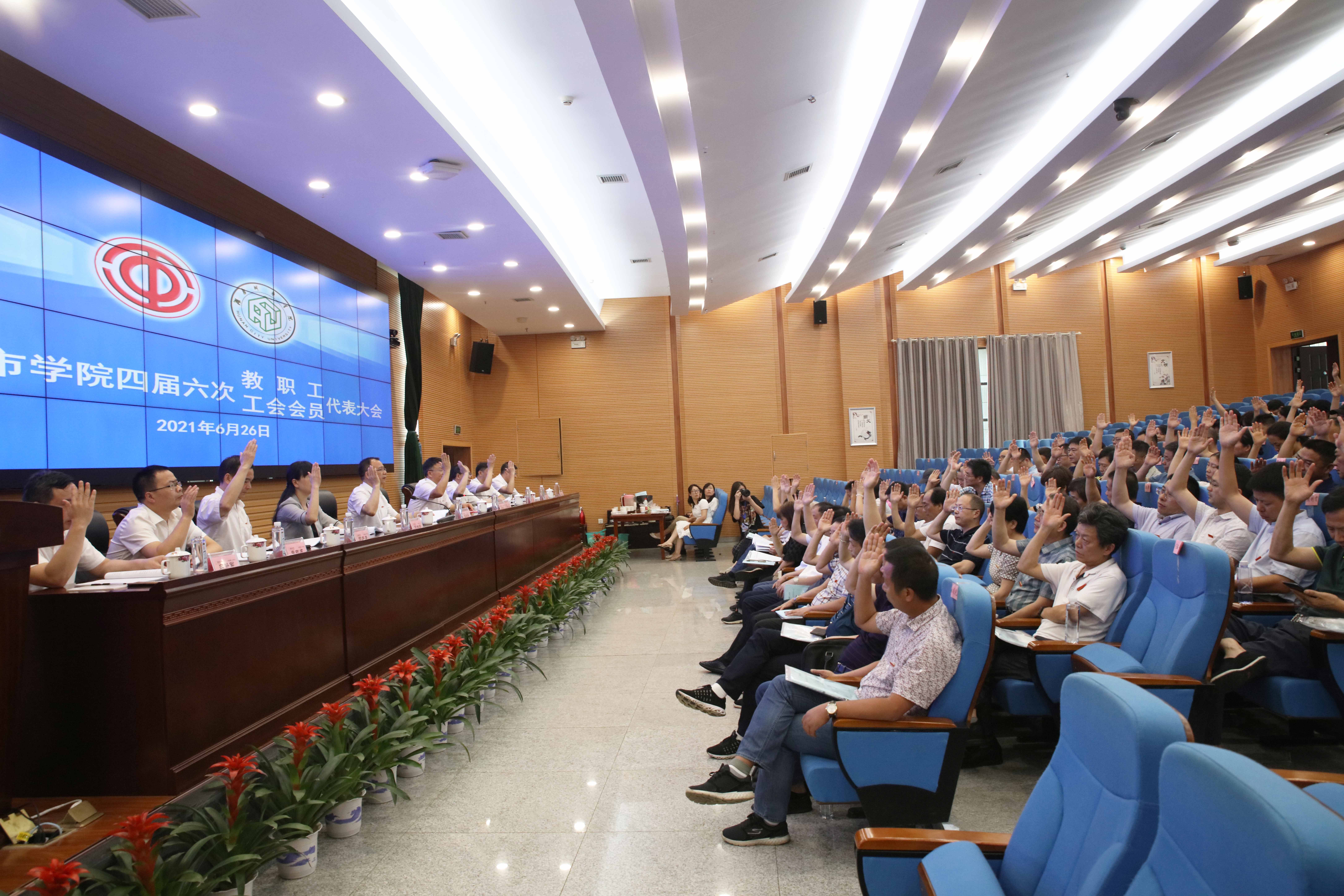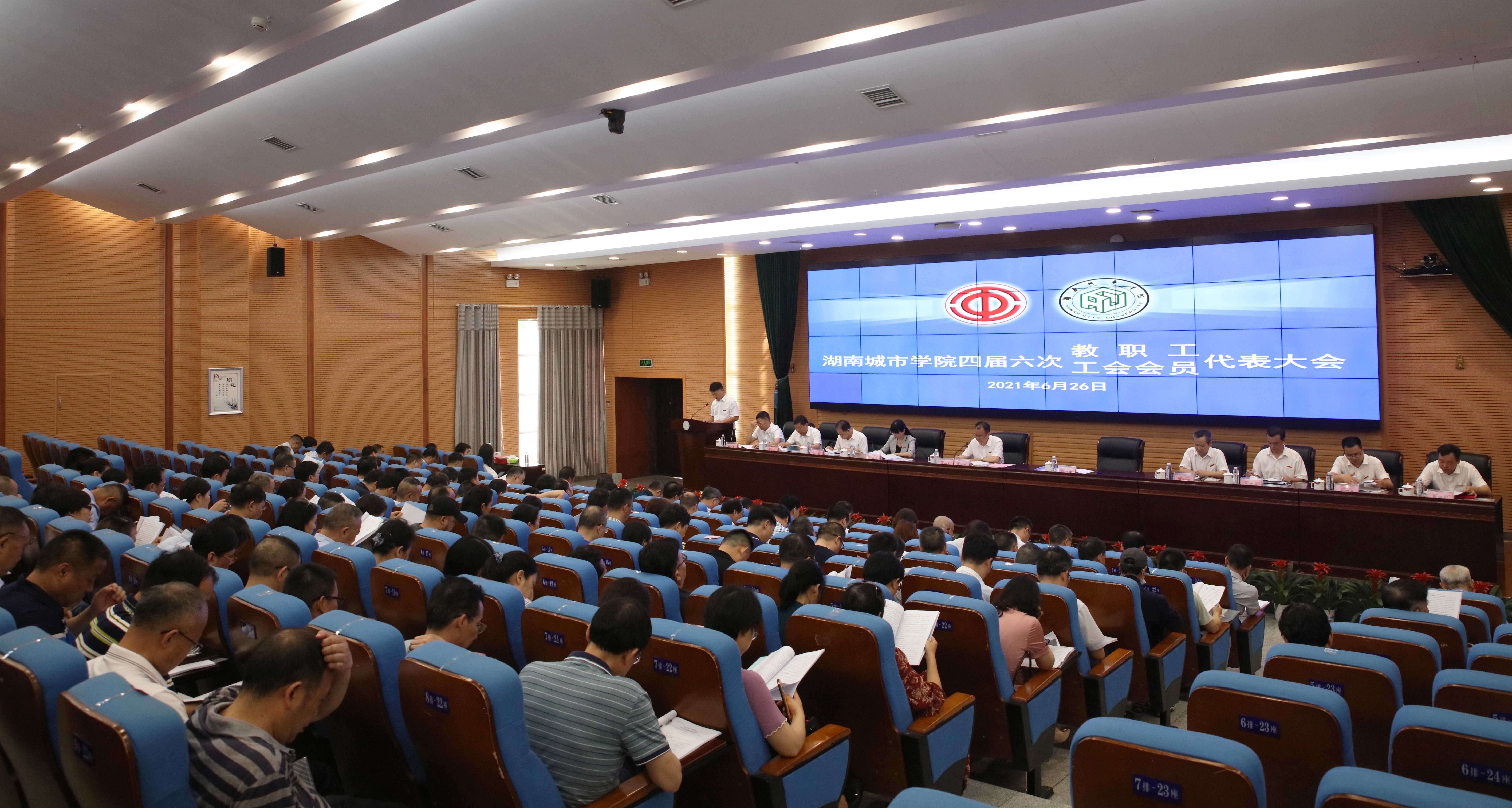 本网讯 2021年6月26日,leyu.乐鱼(集团)体育科技股份有限公司官网第四届六次教职工、工会会员代表大会在图书馆报告厅召开。135名正式代表以及列席代表、特邀代表出席会议。校领导李建奇、汤放华、何旭娟、夏宏宇、何振、雷存喜、谭献良、袁志成、陈列尊、吕贤军在主席台就座。大会由党委书记李建奇主持。