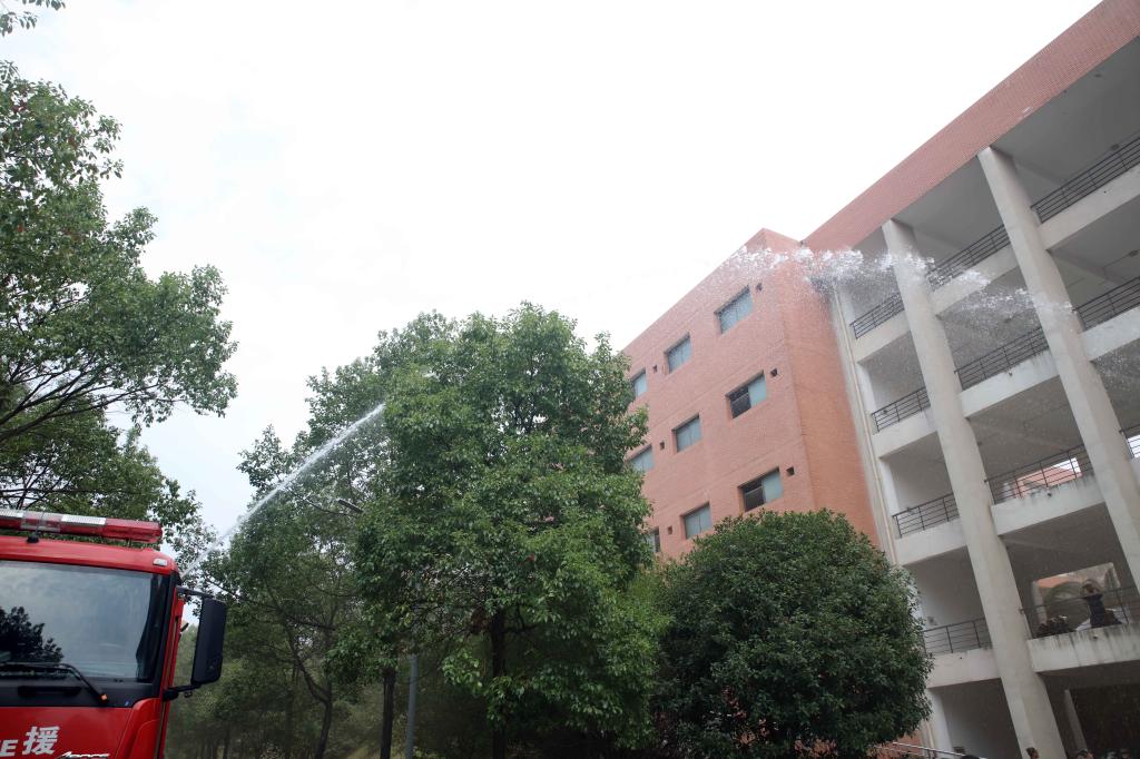 演练结束后,湖南省普消消防安全宣传服务中心教官陈富沅给全体新生讲解了火灾的预防、火场自救及逃生方法等消防安全基本常识,并现场示范灭火器的正确使用方法。同学们轮番上阵,按照“一晃、二拉、三压、四喷”的要诀,热情积极地开展了灭火实操演练。