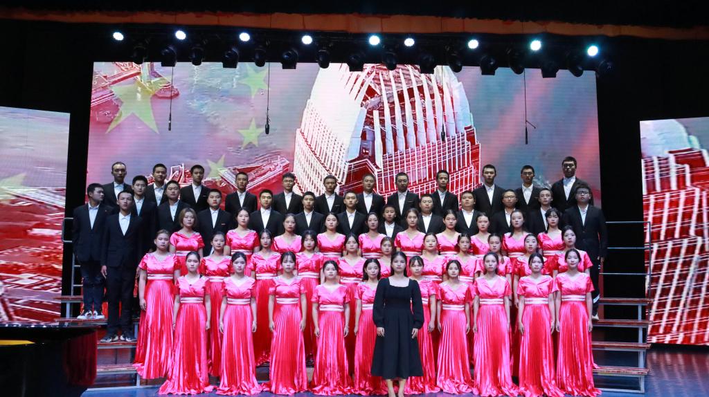 比赛中,13个二级学院学生组成的合唱队倾情献唱,参赛人员着装整齐、激情洋溢,用昂扬奋发的精神风貌表达了爱党爱国、同心奋进的城院情怀。一首首经典传唱的红色歌曲,唱出了他们对中国共产党的无限崇敬与热爱。台上热血沸腾,台下掌声雷动,现场高潮迭起、阵阵欢呼。