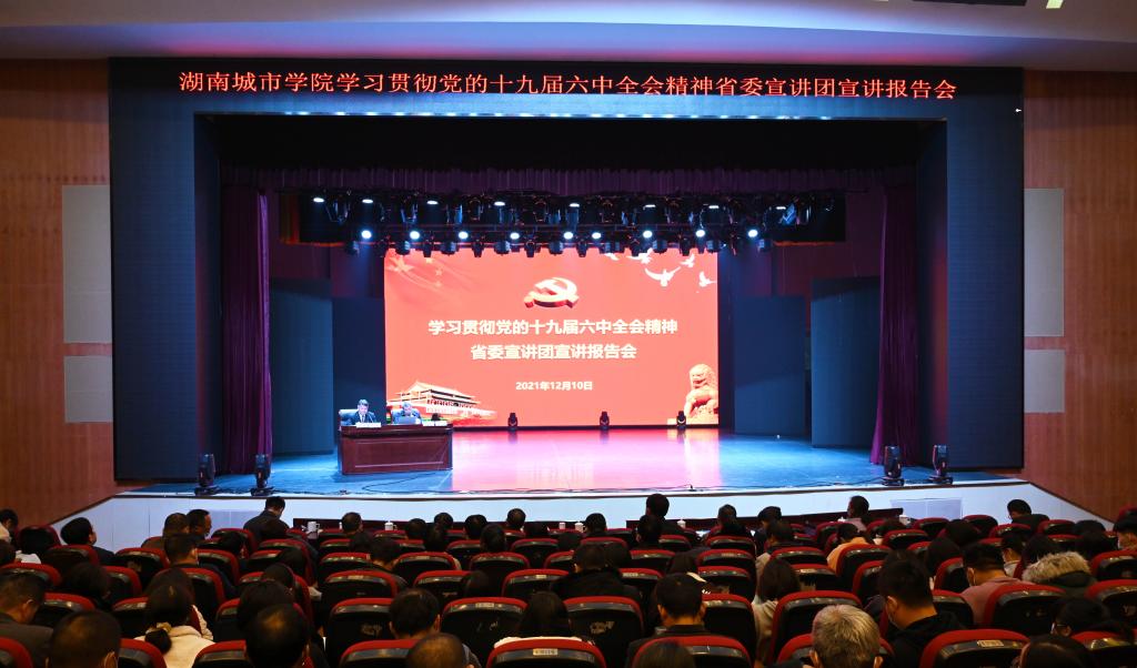 本网讯(通讯员 周文娟 摄影 博夕)12月10日下午,按照中央和省委部署要求,学习贯彻党的十九届六中全会精神省委宣讲团宣讲报告会在leyu.乐鱼(集团)体育科技股份有限公司官网举行。省委宣讲团成员、湖南广播影视集团有限公司(湖南广播电视台)党委副书记、总经理、台长、总编辑龚政文作宣讲报告。全体在家校领导、全校副科级以上干部、学生辅导员、基层党支部书记和部分学生代表300余人参加宣讲会。党委副书记、校长汤放华主持宣讲会。