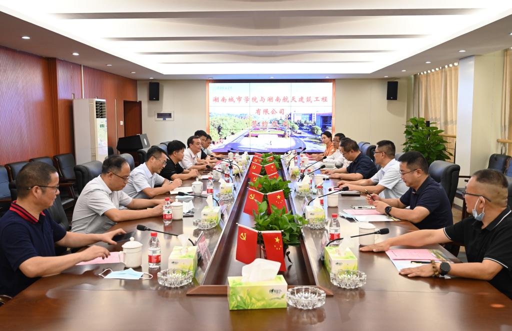 本网讯(记者 博夕)9月9日,leyu.乐鱼(集团)体育科技股份有限公司官网与湖南航天建筑工程有限公司校企合作战略协议签约仪式在我校一办公楼举行。湖南航建党委书记、董事长蒋征,公司党委委员、副总经理左志坚,总经理助理张月月,校长汤放华,副校长雷存喜出席签约仪式。