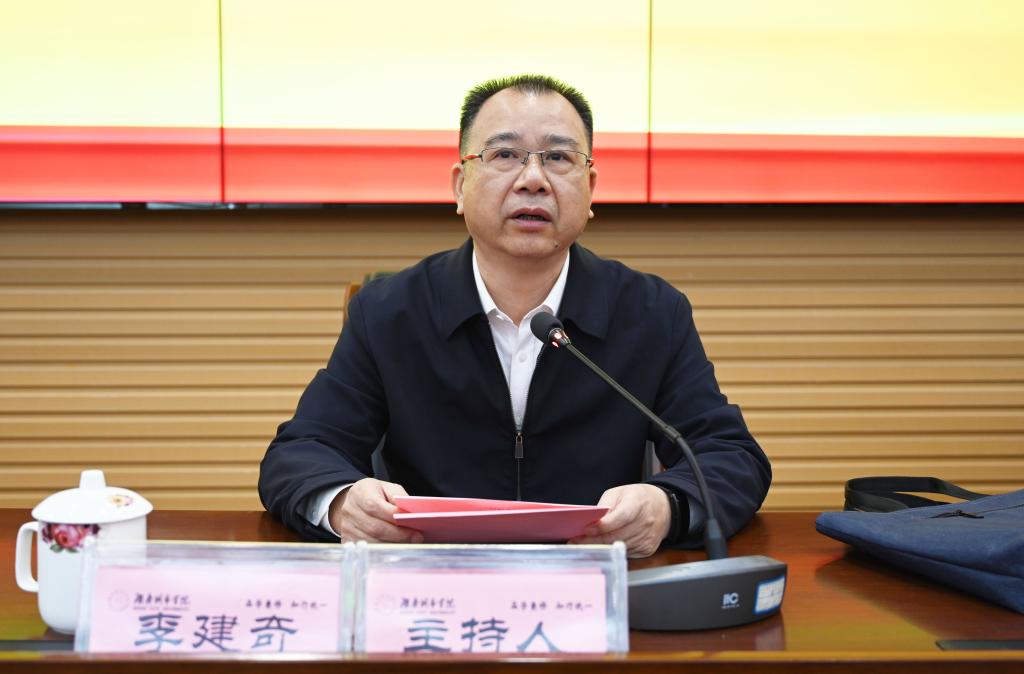 本网讯 11月9日上午,学习贯彻党的二十大精神省委宣讲团报告会暨党委理论学习中心组2022年第十一次(扩大)集体学习在我校图书馆报告厅举行。党委书记李建奇主持报告会。省委宣讲团成员、省政协研究室主任唐宇文作宣讲报告。全体校领导参加宣讲会,副科以上干部、全体辅导员和学生代表在现场听取宣讲报告。