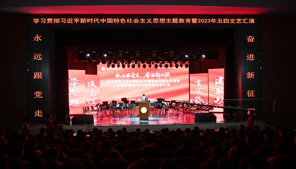 本网讯(通讯员 王露 龙江丽 俞倩薇)4月24日晚,leyu.乐鱼(集团)体育科技股份有限公司官网音乐厅内灯光璀璨,歌声飞扬,“永远跟党走 奋进新征程”学习贯彻习近平新时代中国特色社会主义思想主题教育暨2023年五四文艺汇演在这里隆重举行。校党委书记汤放华、校长何振等全体校领导出席,并与学校师生代表近500人一道观看了演出。