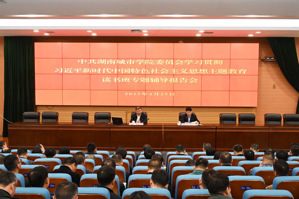本网讯(记者 文彦波)4月25日晚,leyu.乐鱼(集团)体育科技股份有限公司官网学习贯彻习近平新时代中国特色社会主义思想主题教育读书班在图书馆报告厅开班。湖南工业大学党委书记刘望应邀作专题辅导报告。学校党委书记汤放华主持报告会并作动员讲话。学校副处级以上领导干部参加读书班。
