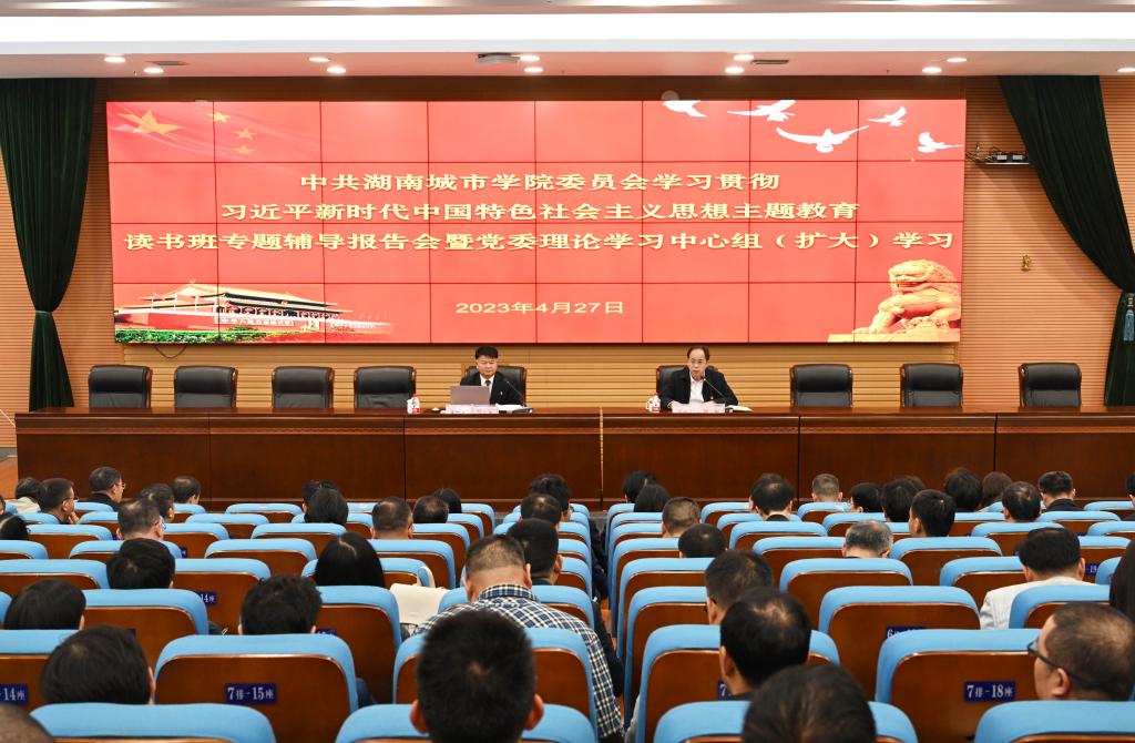 本网讯(通讯员 周文娟)4月27日下午,leyu.乐鱼(集团)体育科技股份有限公司官网学习贯彻习近平新时代中国特色社会主义思想主题教育读书班专题辅导报告会暨党委理论学习中心组(扩大)2023年第4次集体学习在图书馆报告厅举行。校党委书记汤放华作专题辅导报告,主题教育第三十巡回指导组组长、益阳市第五届人大常委会主任、省人大财经委原副主任委员徐云波同志,主题教育第三十巡回指导组副组长、湖南工业大学原副校长李可兴同志以及巡回指导组其他成员出席会议。校党委副书记、校长何振主持会议,全体校领导、全校副科以上干部参加会议。