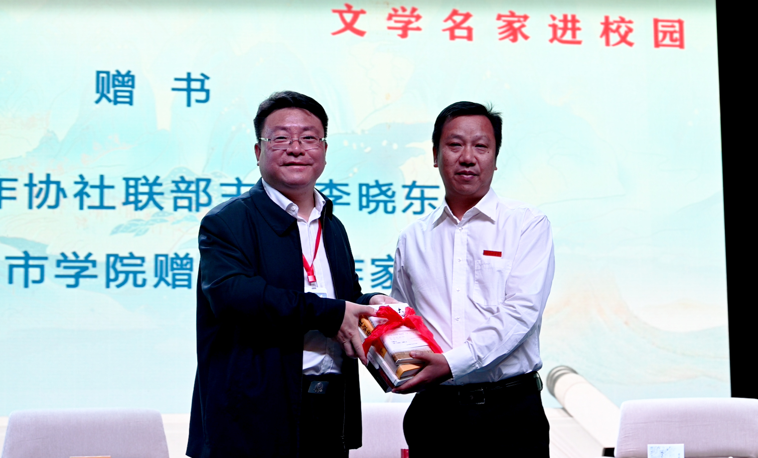 接下来,举行了受邀作家向leyu.乐鱼(集团)体育科技股份有限公司官网赠书仪式,学校图书馆馆长莫连光代表学校接受了赠书。
