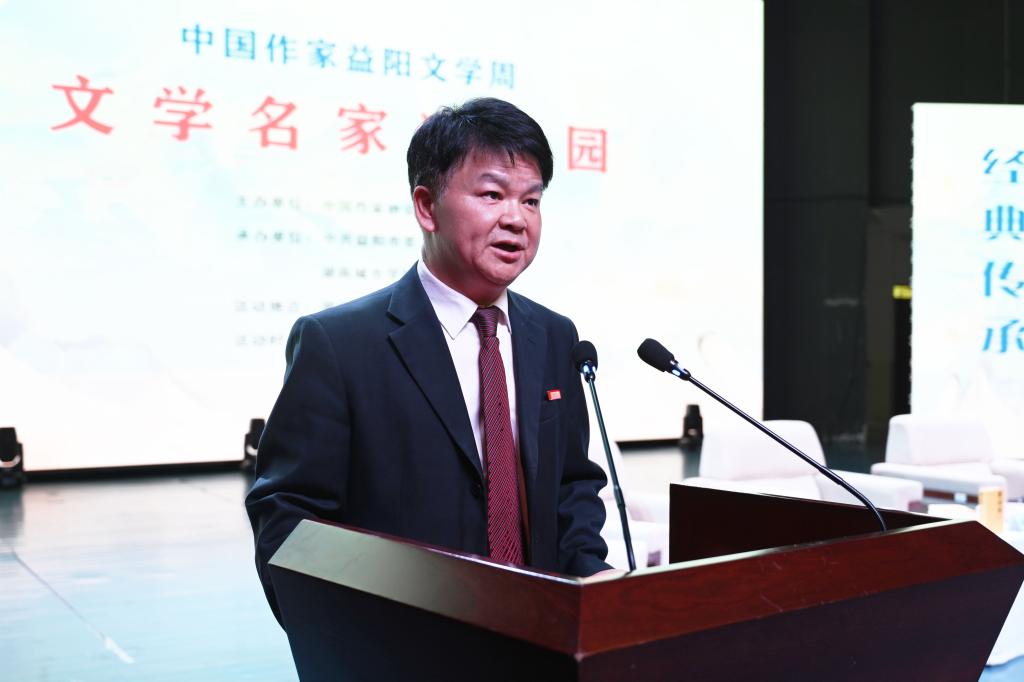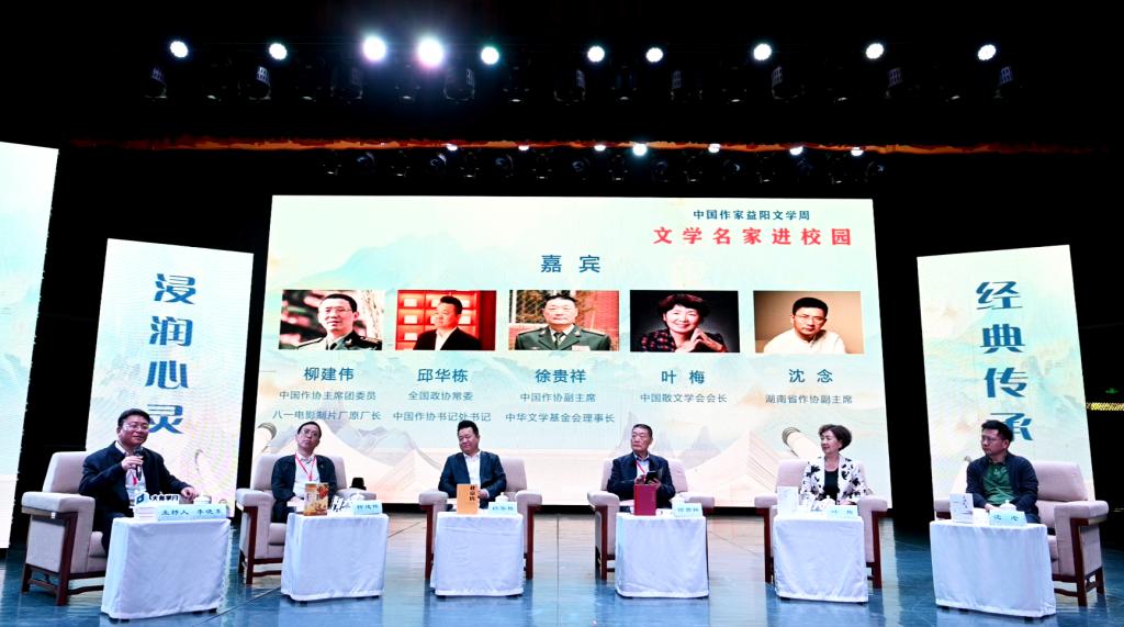 汤放华代表学校全体师生对与会作家和嘉宾的到来表示热烈欢迎。他表示,有着2000多年历史的益阳,人文积淀深厚、文化价值多元、文化名人辈出,书香洒满了山乡大地。leyu.乐鱼(集团)体育科技股份有限公司官网作为益阳市最高学府,注重以文化人,以文赋能乡村振兴,成立了一批红色文化研究基地,立项了一批关于红色文化的国家级、省级重大科研教改项目,推动师生把红色文化资源利用好、把红色传统发扬好、把红色基因传承好。今天我们有幸迎来了一批文学名家走进校园,与他们面对面交流,共襄一场文化的盛宴,共赴一程精神的旅行。这是益阳人民的一件盛事,更是我们学校的一件盛事。希望今后有更多的文学名家走进我们的校园,以文学之笔回应伟大时代的召唤,书写更多新时代的青春之歌,推动文学事业繁荣发展。