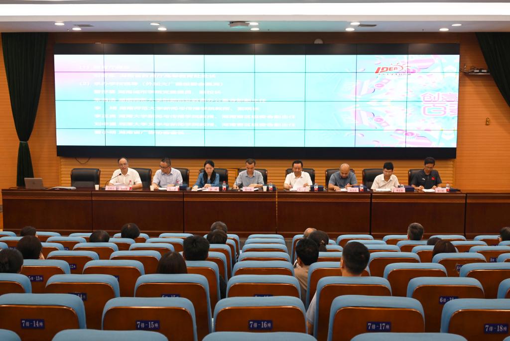 省教育厅高等教育处处长刘奇军,副校长雷存喜,湖南师范大学创新创业教育办公室专职副主任朱浩浩,湖南师范大学新闻与传播学院副院长李琦,湖南大学新闻与传播学院教授、湖南赛区组委会副主任李正良,湘潭大学文学与新闻学院教授、湖南赛区组委会副主任刘中望等出席评审会议。评审会议由我校教务处处长刘长辉主持。