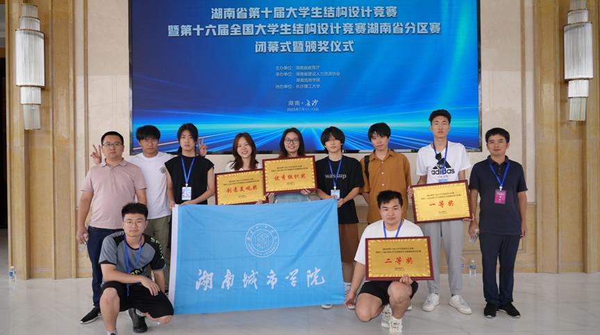 本网讯(通讯员 洪新民)7月13日,从刚刚落幕的湖南省第十届大学生结构设计竞赛现场传来捷报,我校学生代表队荣获一等奖1项、二等奖1项、创意美观奖1项、优秀组织奖1项,并以全省第一名的成绩获得第十六届全国大学生结构设计竞赛的国赛资格,实现该项赛事创办以来我校的最佳成绩。