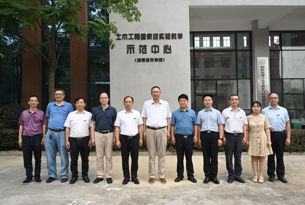 本网讯(供稿:土木工程学院)根据教育部高等教育司和湖南省教育厅关于开展国家级实验教学示范中心阶段性总结入校考察的工作要求,7月17日下午,由中国科学技术大学张增明教授、国防科技大学王鹏教授、湖南师范大学谭亮教授等组成的专家组,到我校土木工程国家级实验教学示范中心(以下简称“中心”)开展现场考察。校党委书记汤放华、校长何振、副校长雷存喜以及教务处、土木工程学院、中心的相关领导陪同考察。