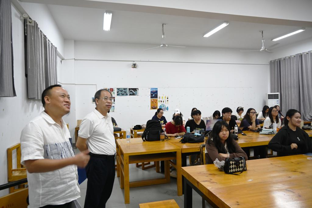 94日上午8点,汤放华、副校长雷存喜一行赴一、二、三教学楼等教学楼栋,查看开学第一天的教学情况,随机听取了沈款、沈旭明两位老师的“马克思主义基本原理”课程。在听课中,汤放华仔细观察教师的教学状态和学生的听课情况,认真做好听课记录,课间与任课教师亲切交流,充分肯定了两位教师认真负责的教学态度和生动的教学模式,勉励他们不断创新教学方法,引导学生积极主动学习,坚决落实立德树人根本任务,坚守为党育人、为国育才的初心使命,培养担当民族复兴大任的时代新人。