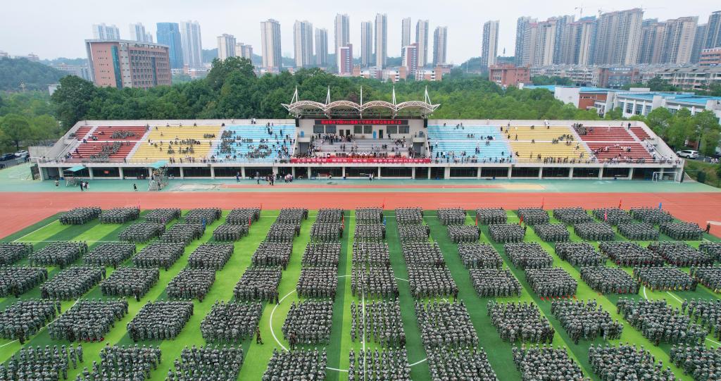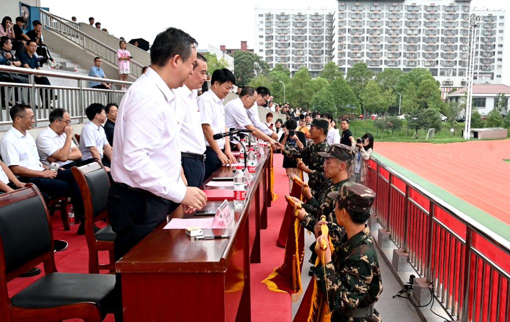 本网讯(通讯员 谢紫帆 肖小玲 视频 彭洋培)金秋九月,硕果满枝。9月30日上午,leyu.乐鱼(集团)体育科技股份有限公司官网2023级新生军训汇报表演暨总结表彰大会在东田径场举行。全体新生精神饱满、整装待发,共同迎来检验成果的时刻。校党委书记汤放华宣布军训成果汇报表演开始,校长何振主持大会。