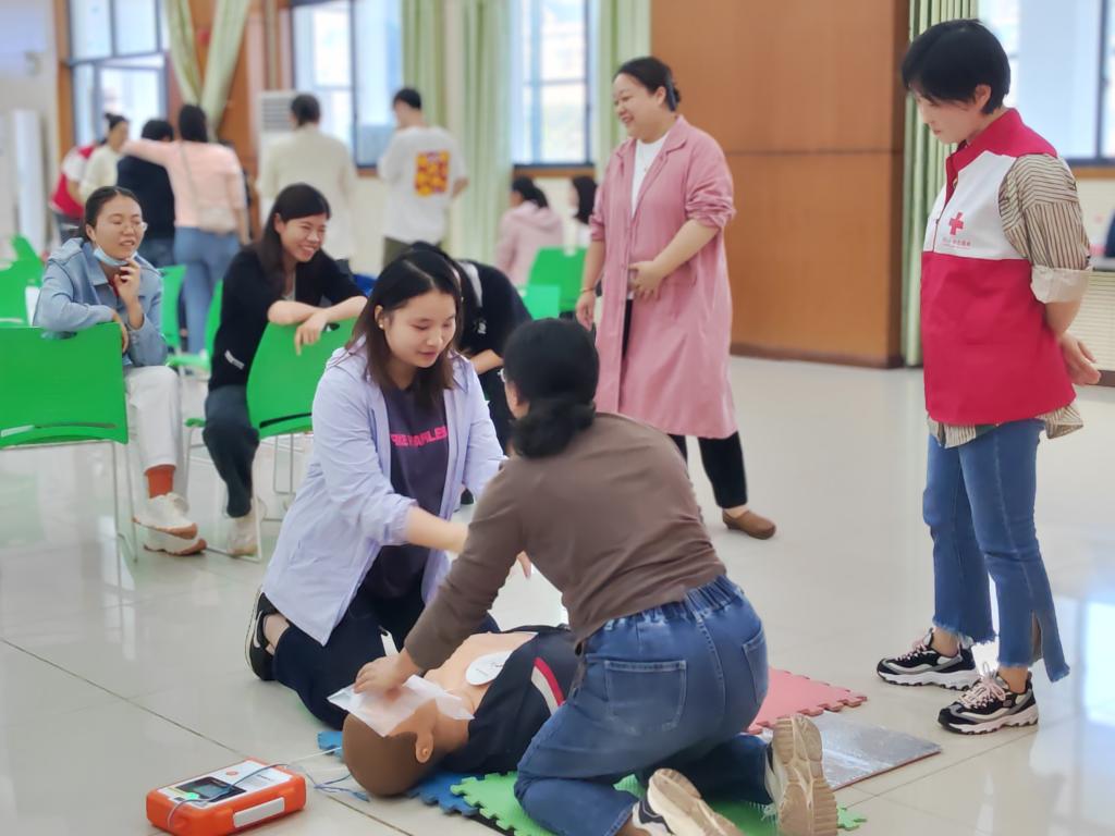 教学结束后,学员们进行了心肺复苏、人工呼吸等常用急救技能的现场考核,顺利考取了红十字救护员证。截至目前,我校已有300余名师生通过培训,获得了救护员证。