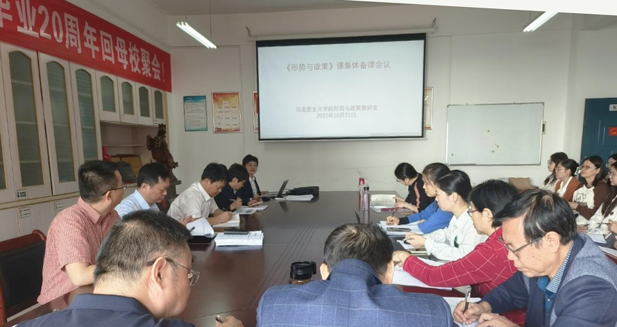 本网讯(通讯员 郭绚霞10月21日上午9点,我校马克思主义学院召开2023年秋季学期“形势与政策”课集体备课会。校党委书记汤放华出席备课会并作指导。马克思主义学院院领导及担任本学期“形势与政策”课程教学的老师参加。会议由形势与政策教研室主任郭绚霞主持。